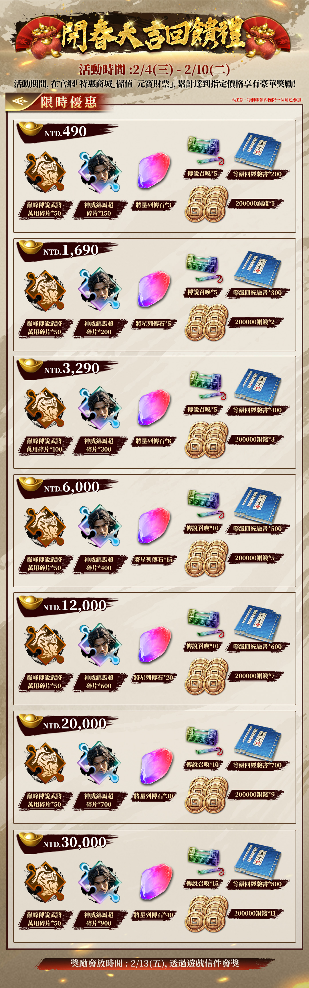 2/13(五)19:00前,透過遊戲內信件發送